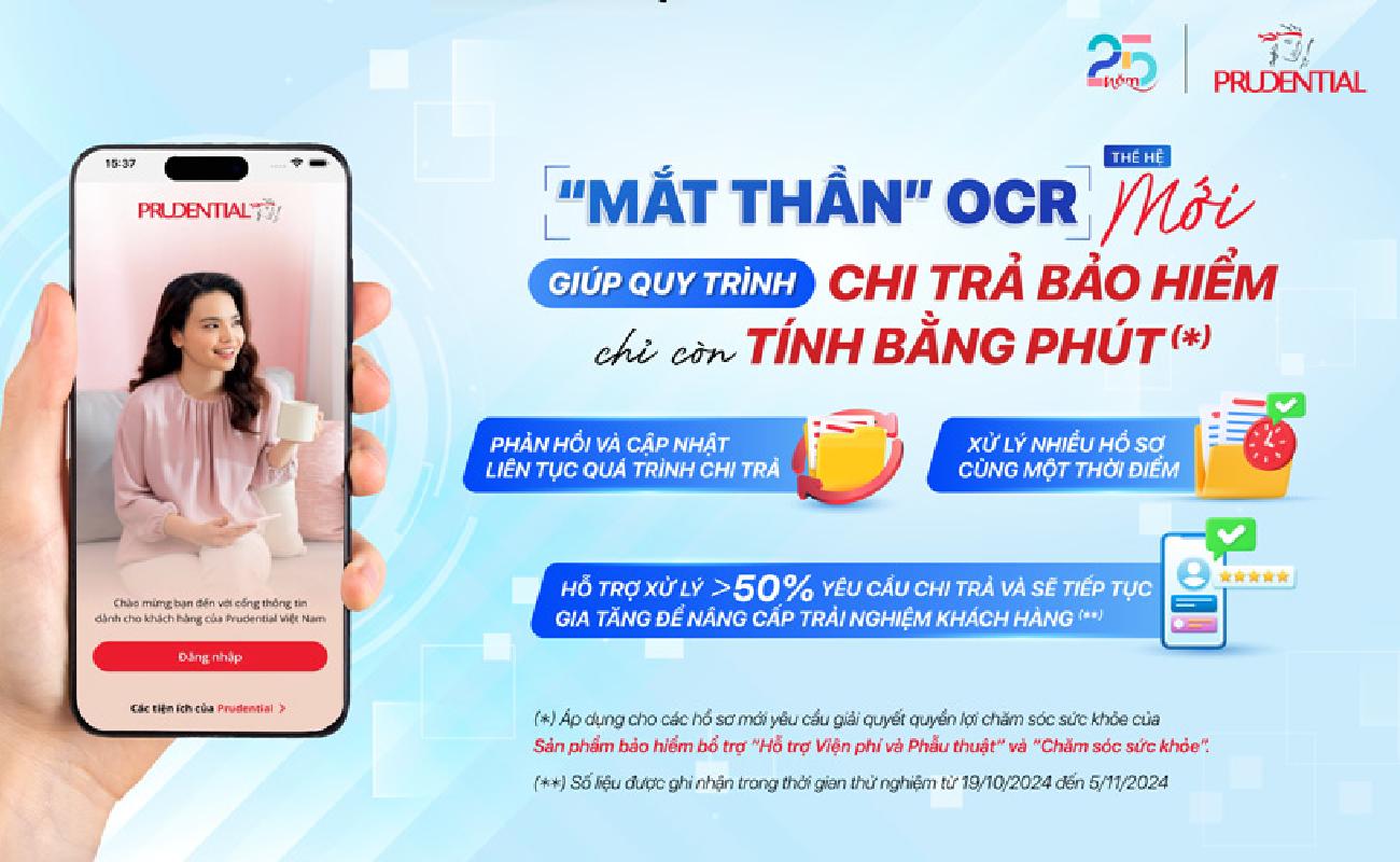 Minh chứng rõ nhất, tháng 11/2024, Prudential ra mắt công nghệ OCR thế hệ mới (3), có khả năng nhận dạng, trích xuất dữ liệu từ hình ảnh sang văn bản nhanh chóng với tốc độ xử lý dưới 20 giây & độ chính xác đến 96%. Nhờ đó, hệ thống có thể đọc và phân tích chứng từ của khách hàng dưới định dạng hình ảnh, phản hồi ngay lập tức về tính hợp lệ của chứng từ và đẩy nhanh quy trình đưa ra quyết định xét duyệt hồ sơ chi trả một cách nhanh chóng.