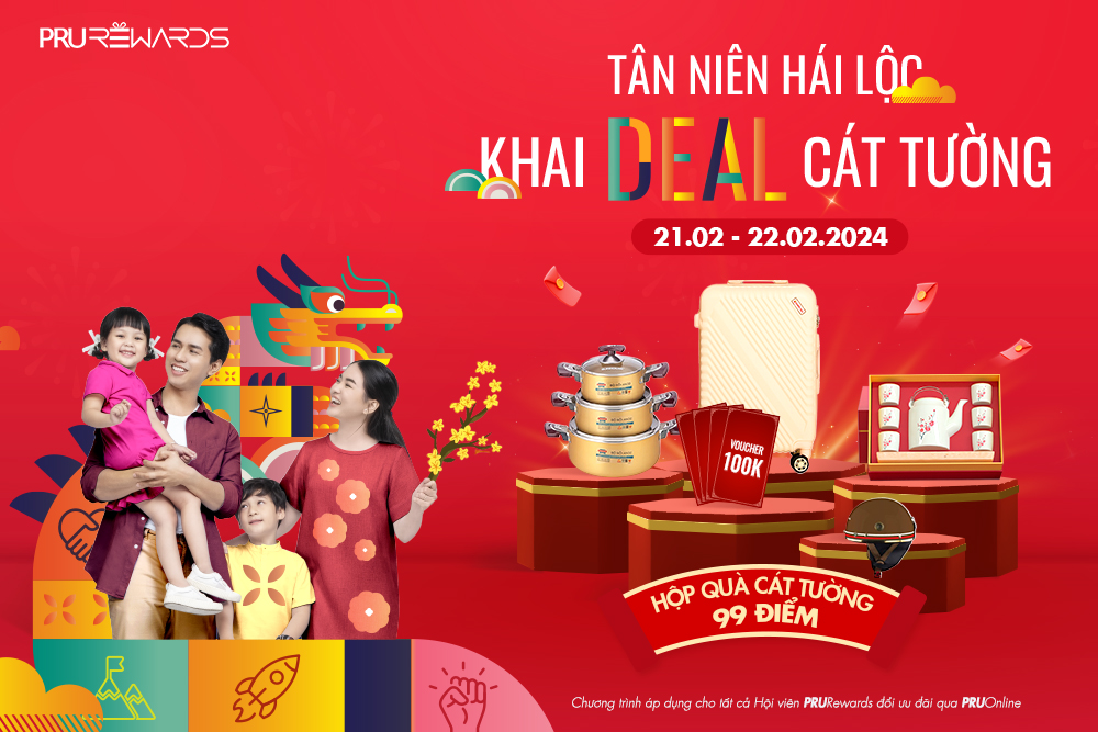 Chào đón Xuân Giáp Thìn 2024, PRURewards(1) hân hoan khai niên cùng chương trình ưu đãi “Tân niên hái lộc – Khai Deal cát tường” với ngàn ưu đãi chỉ 99 điểm cùng cơ hội nhận những phần quà có giá trị cực hấp dẫn.